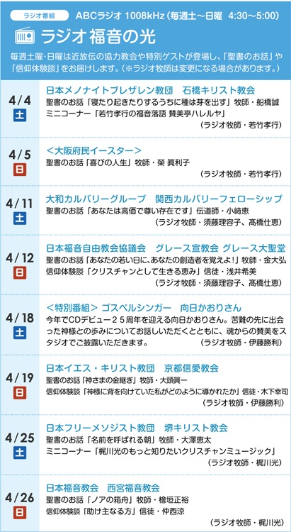 近放伝がオリジナル制作しているラジオ番組「福音の光」。